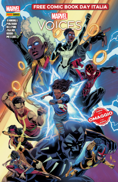 Nell’albo Marvel’s Voices per il Free Comic Book Day Italia 2023, nuovi eroi e nuove eroine si fanno largo nell’Universo Marvel con storie inedite. Volti che rappresentano “il mondo fuori dalla finestra” e che si sono imposti nel cuore dei Marvel-fan... come Ironheart e Ms. Marvel, protagonista di una storia scritta da Sabir Pirzada (sceneggiatore della serie TV di Kamala!) Inoltre, questo viaggio tra le diverse “voci” del Marvel Universe si completa con veterani come Shang-Chi e Monica “Spectrum” Rambeau!