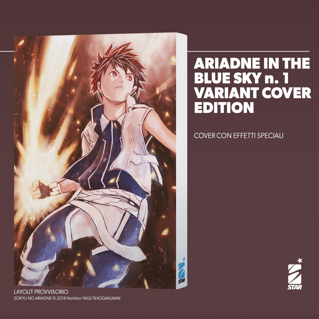 ARIADNE IN THE BLUE SKY n. 1 VARIANT COVER EDITION con effetti speciali, realizzata da Norihiro Yagi. Disponibile solo in fumetteria, sul sito starcomics.com e a Lucca Comics & Games;