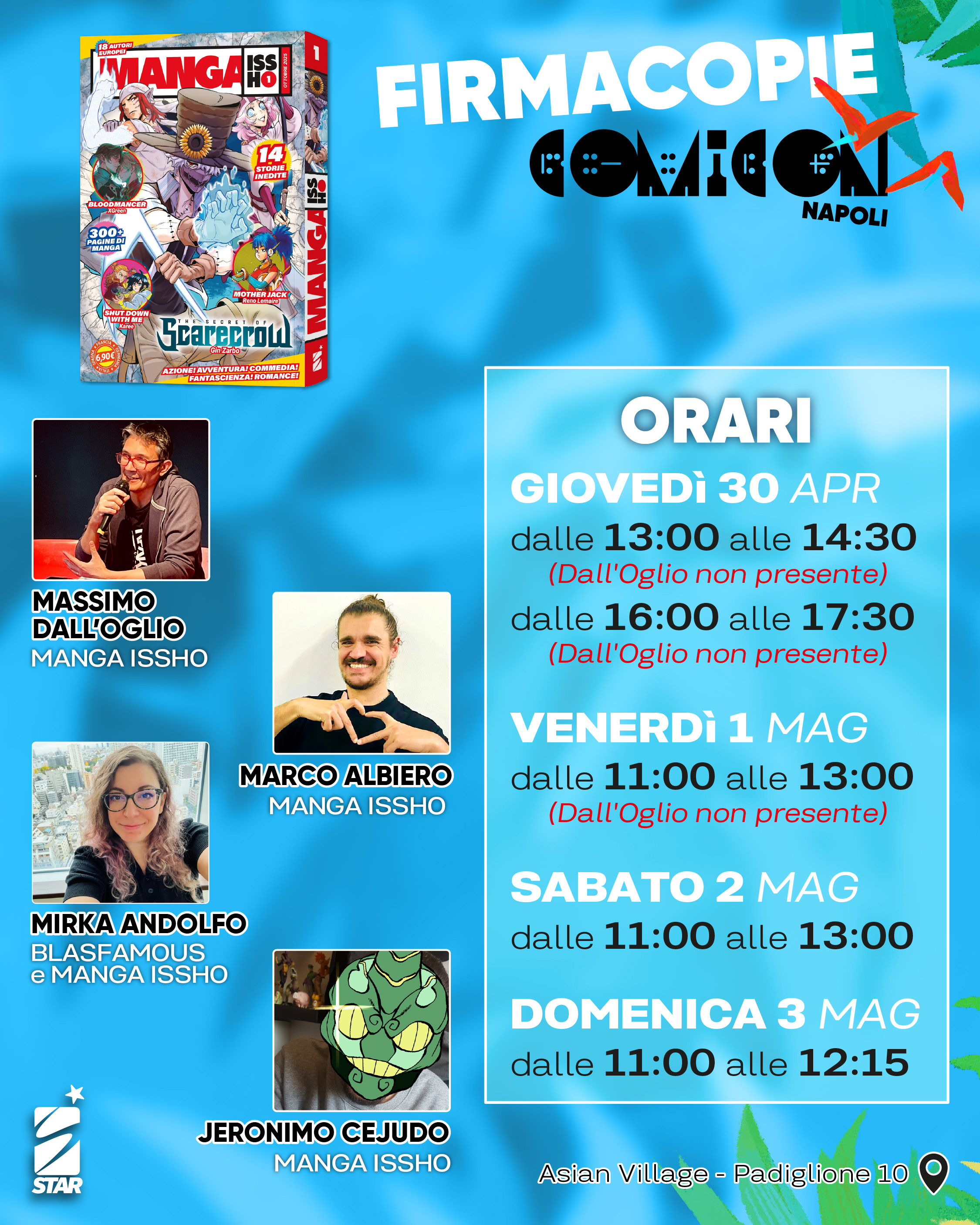 Tutte le sessioni autografi si svolgeranno nell’area dedicata presso lo stand Star Comics (Asian Village, Padiglione 10).